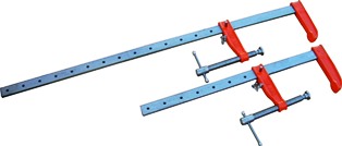 Estas tienen más variedad de tamaño y fuerza dependiendo de los materiales y el grosor de la barra y las mandíbulas fijas y móviles. Desde 4 hasta 48 pulgadas, por lo general. Son mucho más ligeras y fáciles de trabajar y se usan para unir piezas de poco peso pero con grandes dimensiones, como libreros, cajones, etc.