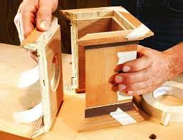 Supongamos que queremos ensamblar una caja. Ya tenemos las piezas cortadas a las dimensiones deseadas y ahora sigue el momento de unir las piezas. Primero se debe hacer una unión en seco; es decir, sin pegamento, ni tornillos/clavos para verificar que las piezas embonen correctamente y que queden los ángulos cuadrados a 90°. Dependiendo de la forma, el tamaño, el material y el uso destinado a la caja se puede usar cualquiera de las siguientes prensas: