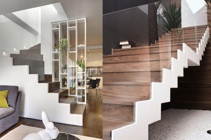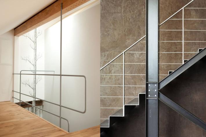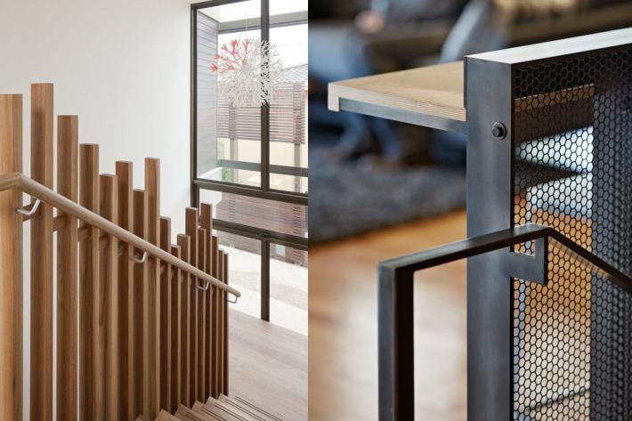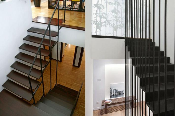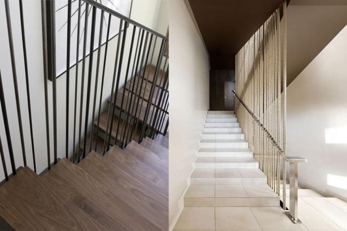 Pero si el caso es que queramos que la barandilla se vea, podemos elegir entre varias opciones ya sean de forma como de material. La opción más convencional es la típica barandilla de madera antigua, aunque hoy en día, basándonos en este concepto es posible realizar barandillas de listones verticales u horizontales, o combinados, generando un juego de grosores, texturas y acabados.