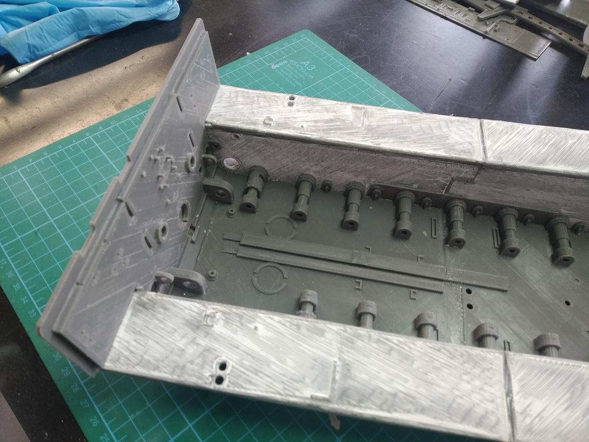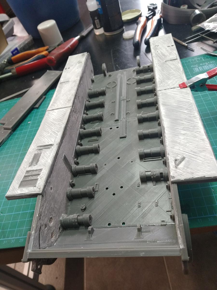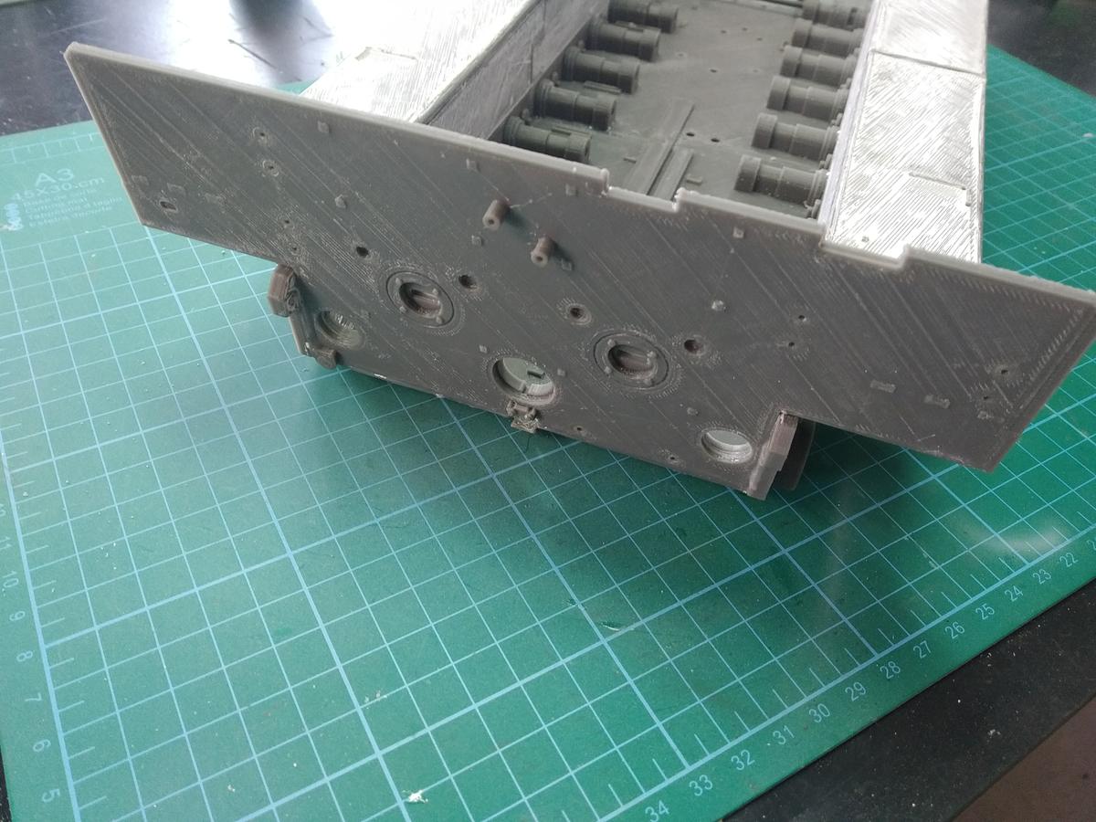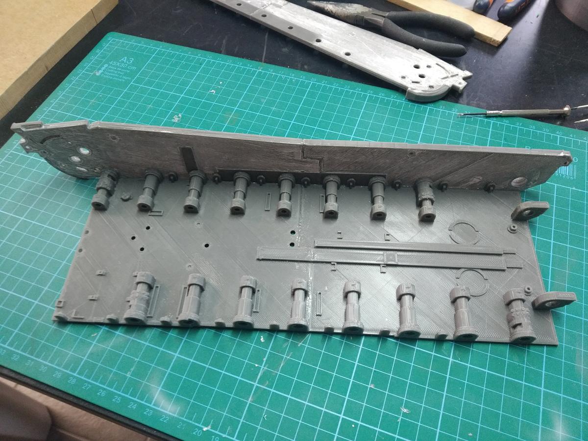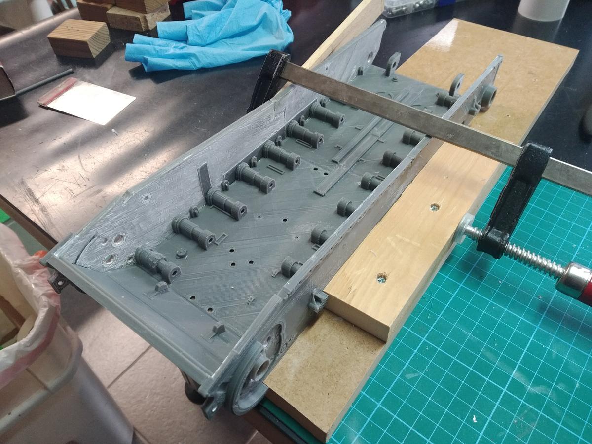 Esto se consigue planificando una serie de cortes. El chasis, a una escala 1:16, mide unos 360mm, así que hay que partirlo estratégicamente, pensando en que después hay que unirlo y tiene que quedar todo en su sitio.