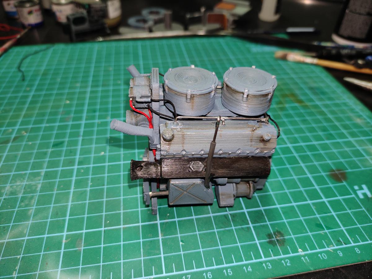 El montaje de la caja de cambios ha sido con diferencia de las cosas mas complicadas de todo el modelo. La caja es totalmente funcional y tiene 4 marchas, punto muerto y diferencial. Y todos los engra ...