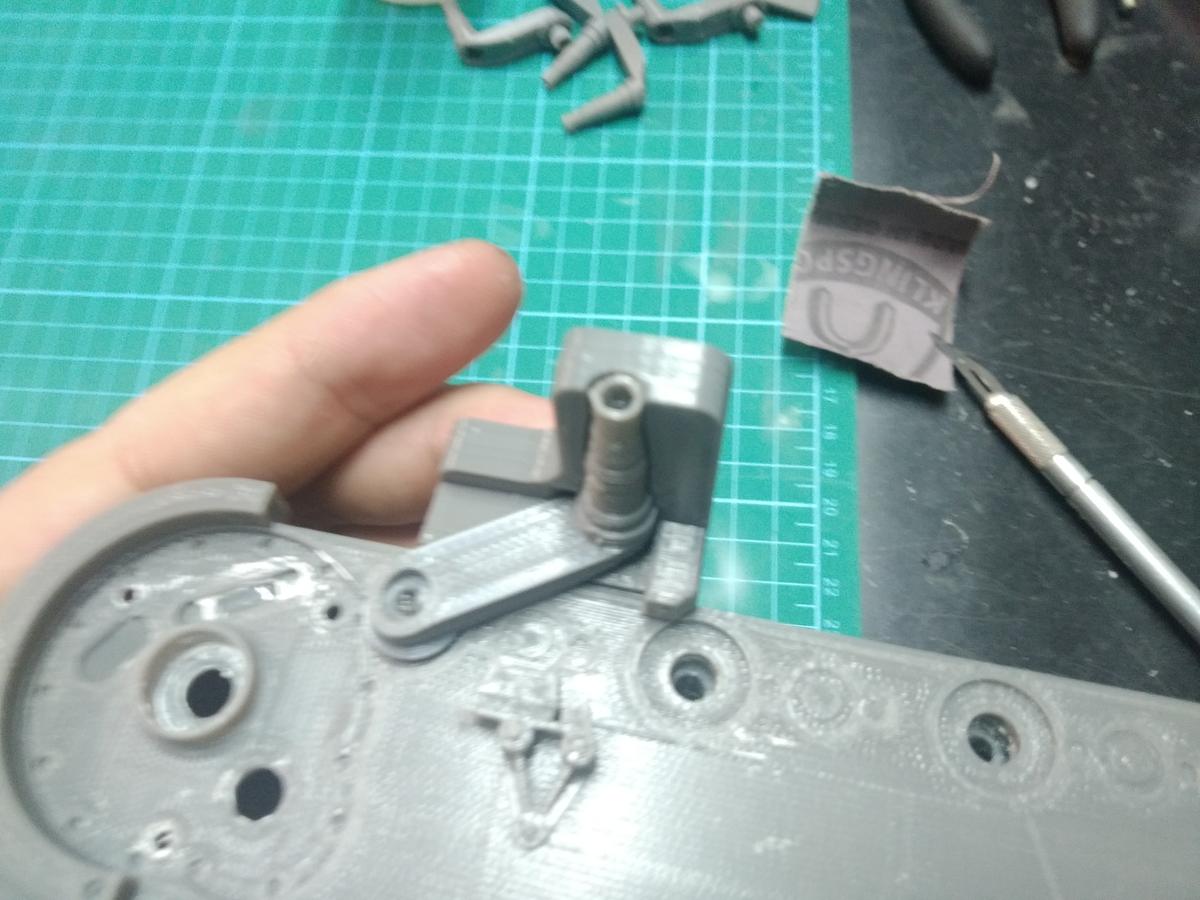 En mi caso, no voy a usar una barra de hierro, pero he encontrado varilla de carbono unidireccional de 3mm de diámetro, que tiene un comportamiento bastante aceptable. Así que he añadido unas piezas extra para fijas con Ciano el extremo de la varilla al chasis, y la suspensión funciona bastante mejor de lo que esperaba!