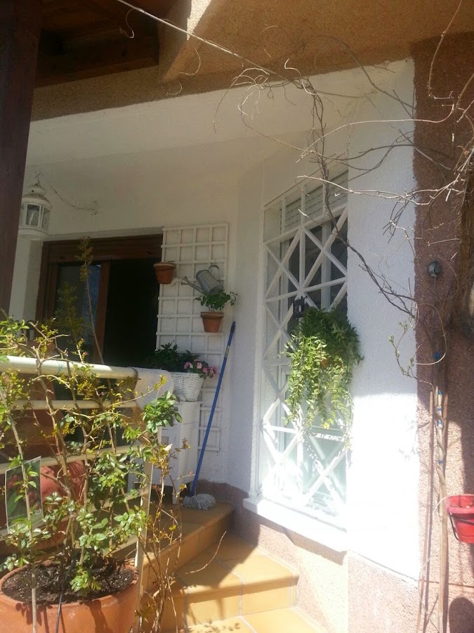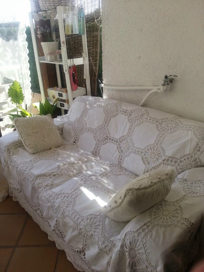 Ved el resultado de la ampliación de la terraza sobre el patio. Le hemos dado el el estilo ibicenco pintando el proyectado marrón de paredes y techo, en virginal blanco. ¡Muy fresquito!