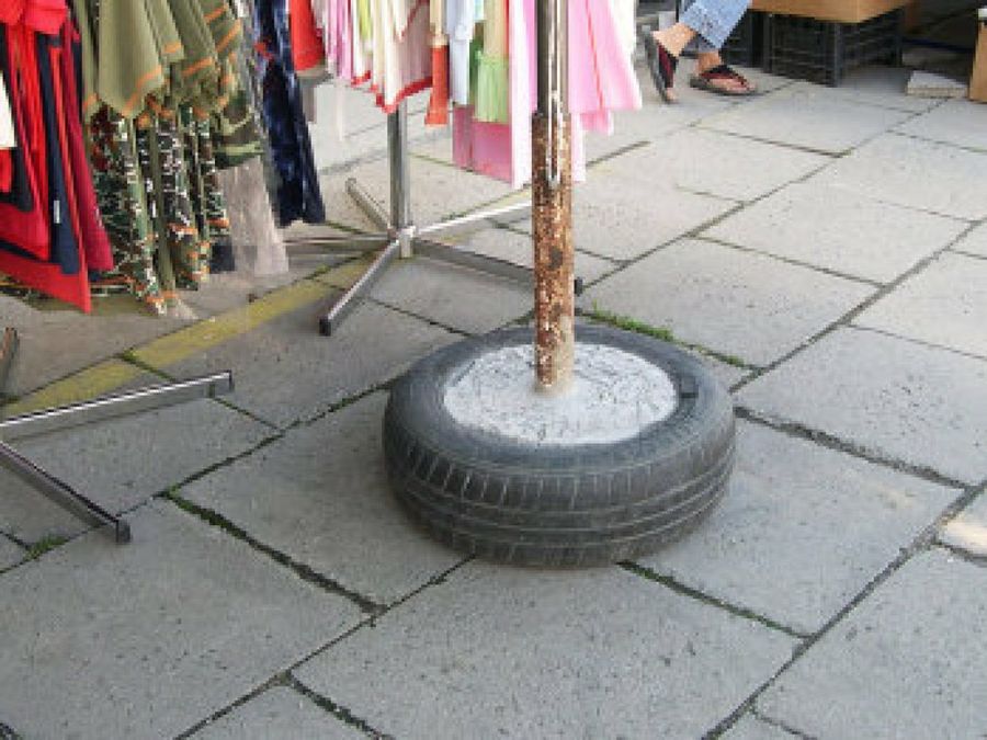 Todo el mundo desea tener una hamaca en el jardín o terraza, pues hay pocas cosas más relajantes que tumbarte al aire libre. Sin embargo, a veces el sol resulta tremendamente molesto. Por ello, qué mejor que construir una mini sombrilla. Nos podemos basar en este modelo para idear la manera de fabricarlas usando, por ejemplo, tubos de PVC. Aquí tenéis un vídeo con más detalles..Sin embargo, uno de los principales problemas a la hora de colocar una sombrilla es dónde sujetarla. Aquí vemos una solución muy práctica, una rueda en desuso y un poco de hormigón. También podemos sustituir la rueda por algo más estético como, por ejemplo, un tiesto.