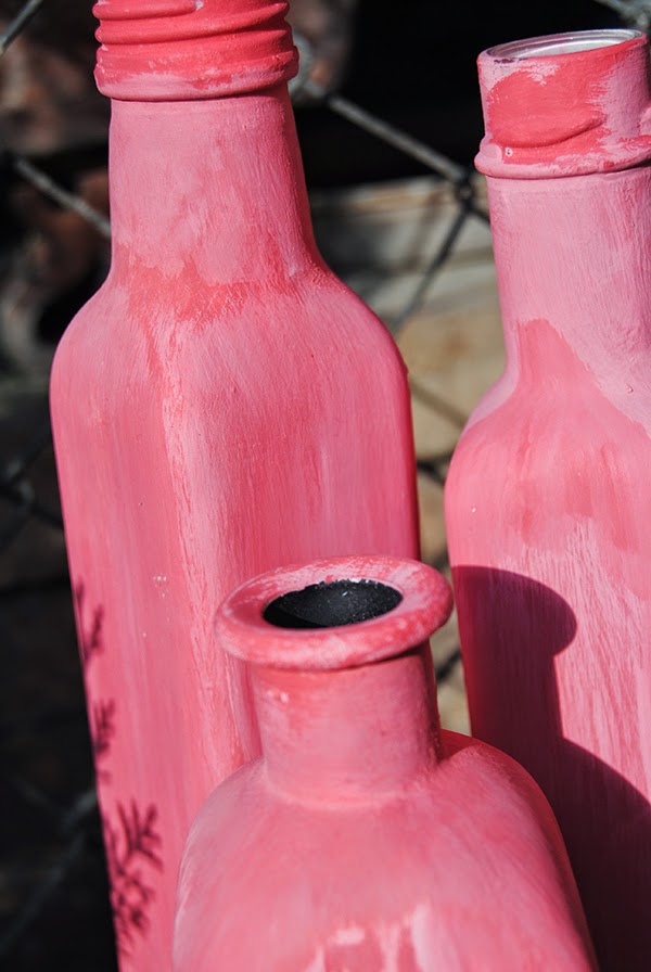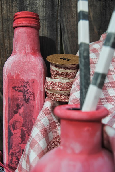 Una vez que se seca la imprimación podemos hacer casi cualquier cosas sobre la superficie de la botella. Estuve mezclando rojo y blanco hasta que encontré un color que me gustaba. Esto es un poco influencia de mi amiga Raquel, una amante de la combinación del color maquillaje con el negro.
