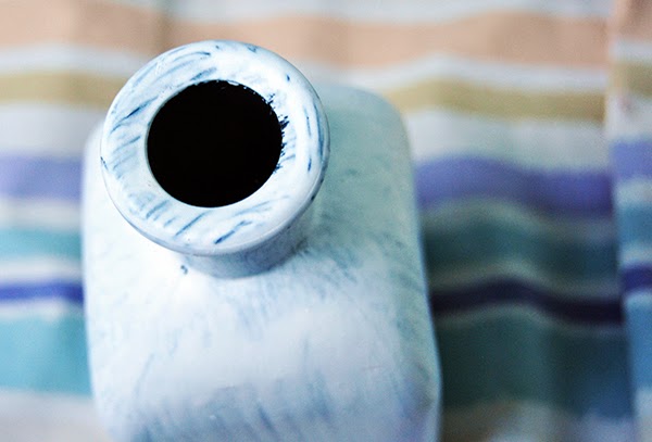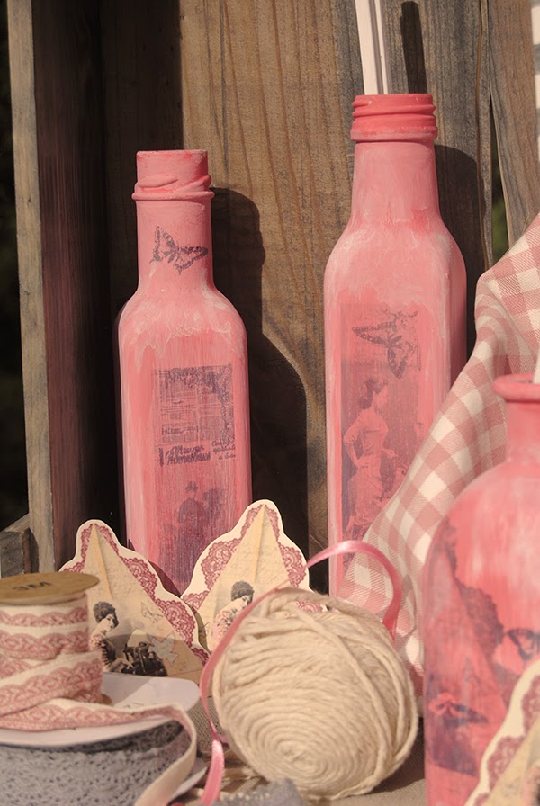 Tenía en casa un par de botellas de vinagre y de aceite que estaban vacías. Antes de tirarlas a la basura pensé que podía hacer algo con ellas. Así que les dí una manita de imprimación. Un paso esencial para pintar sobre el cristal.