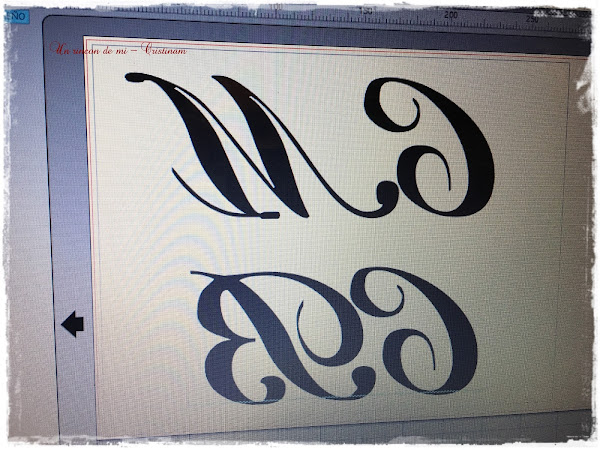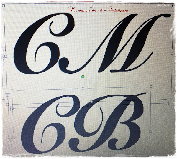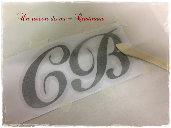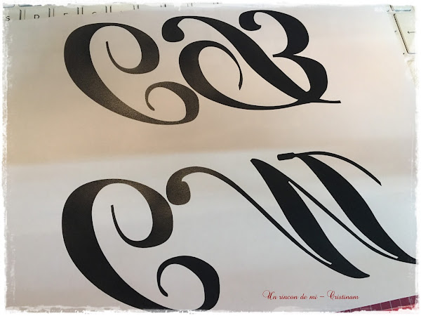 En el ordenador he escrito nuestras iniciales en color negro y luego las he volteado , imagen en espejo para imprimirlas en mi impresora laser.
