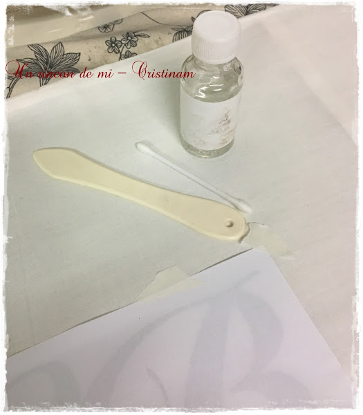 Voy a realizar un transfer que consiste en poner un líquido por encima del papel y frotar el papel para que la tinta de mi papel se transfiere a la tela.