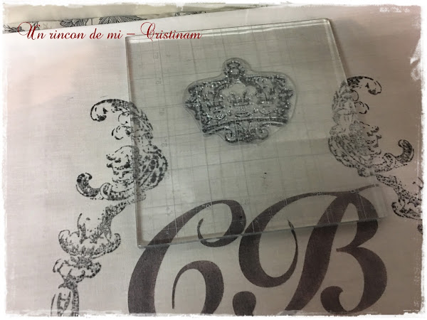 He puesto la tinta en los sellos y he estampado en la tela alrededor de las iniciales.