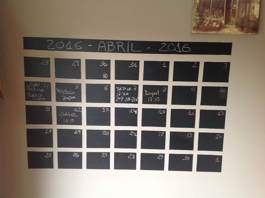 he separado las semanas y los días. Con cinta de carrocero una madera de palet y un nivel he puesto las separaciones para que este recto.