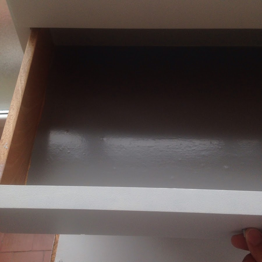 El fondo de los cajones lo he forrado con un adhesivo en color gris a juego con la puntura. En 1975 mi madre los forró con un papel fabricado en Suiza...de esos que ya no quedan ni por la calidad ni por la originalidad de diseño.