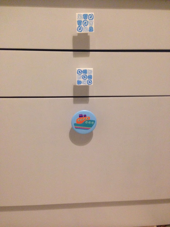 Le he puesto unos tiradores también de la misma tienda, dos de ellos iguales y el tercero diferente por darle un toque más original.