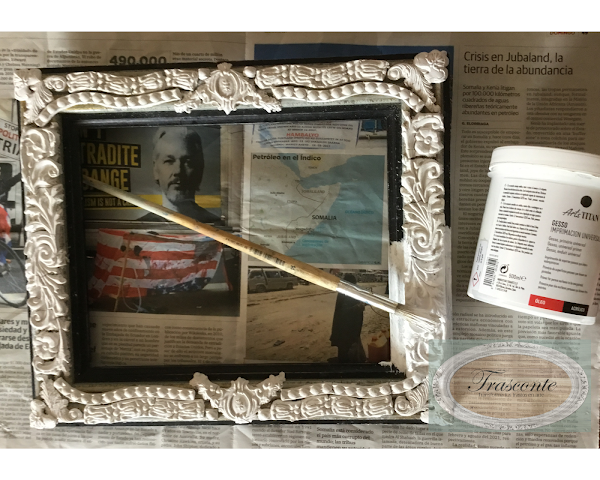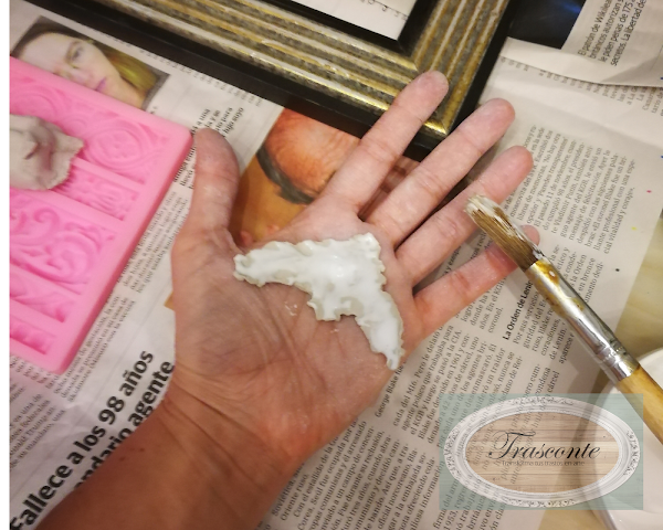 La idea es añadir molduras con pasta de papel, al marco original, para cambiar su aspecto.