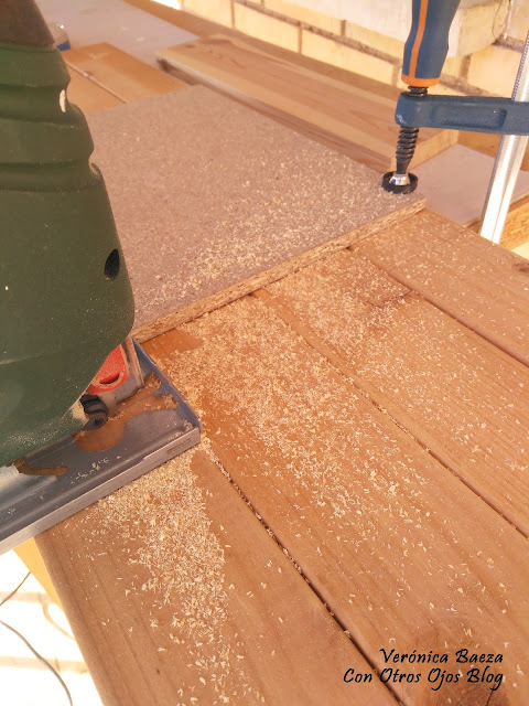Una vez secos los listones los pegué a la base con adhesivo para madera.