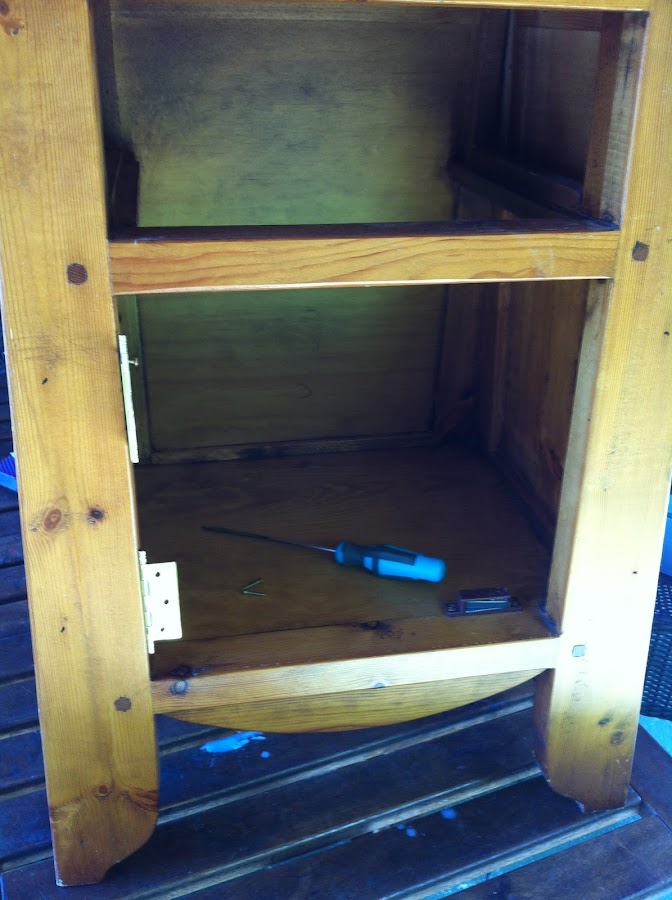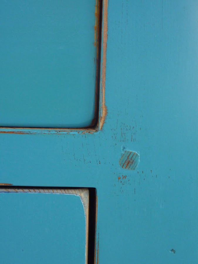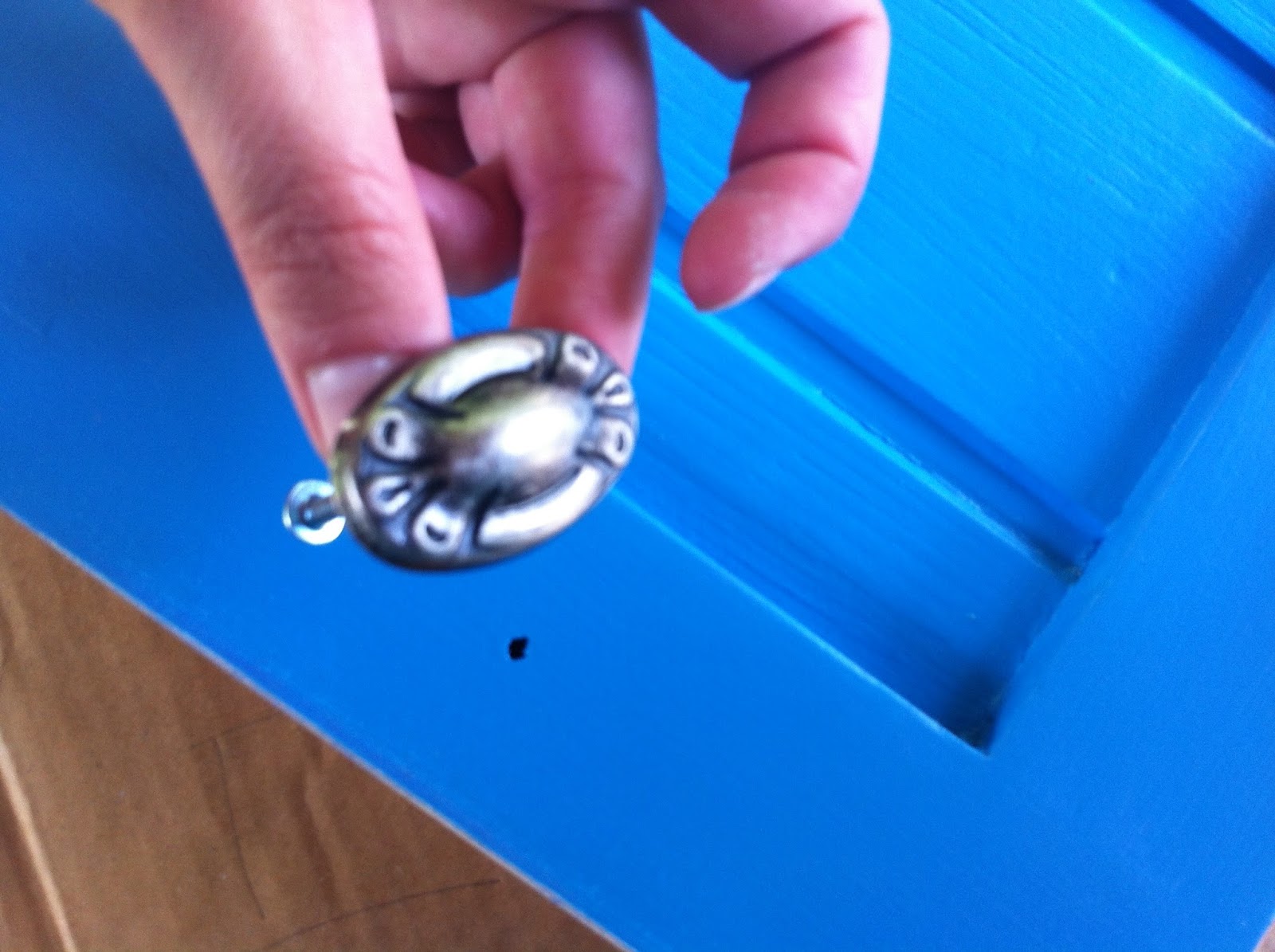 en tono plateado en puerta y cajón 11.- colocamos tiradores que faltaban