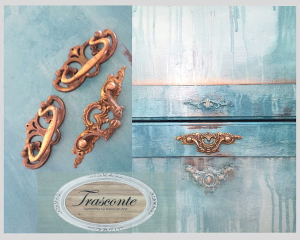 Ahora el mueble me pide que lo ponga otros tiradores diferentes a los originales. Yo siempre conservo tiradores que me sobran de antiguos proyectos. Al final elegí tres tiradores con diseños diferentes, uno para cada cajón.