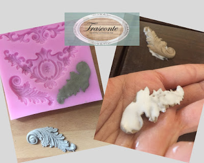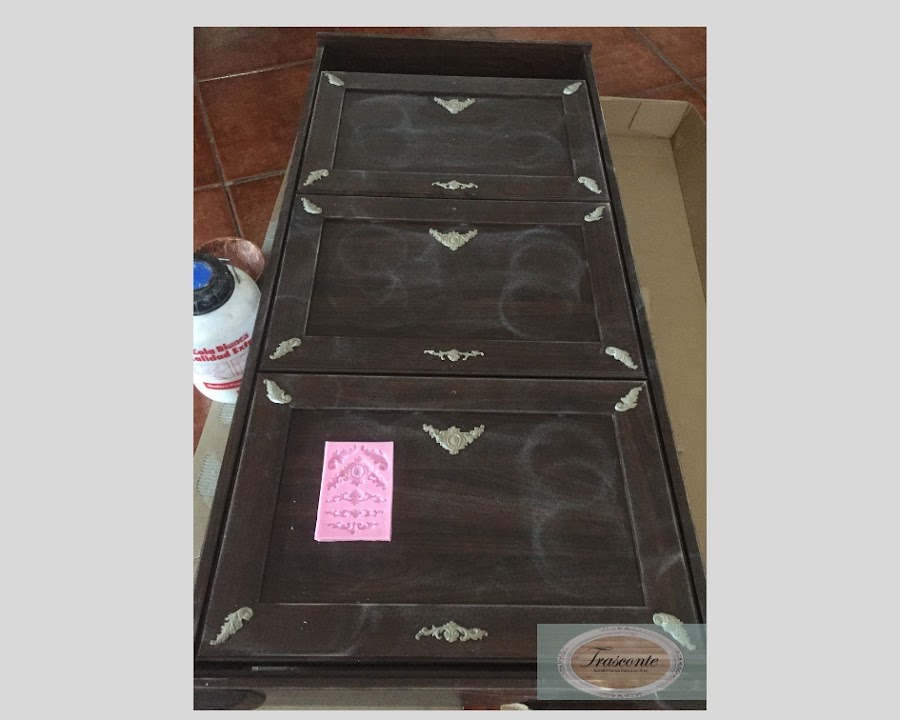 El mueble necesitaba algo de relieve para poder tener un poquito más de profundidad, yo tenía estos moldes de silicona y con pasta de papel se forman con facilidad.