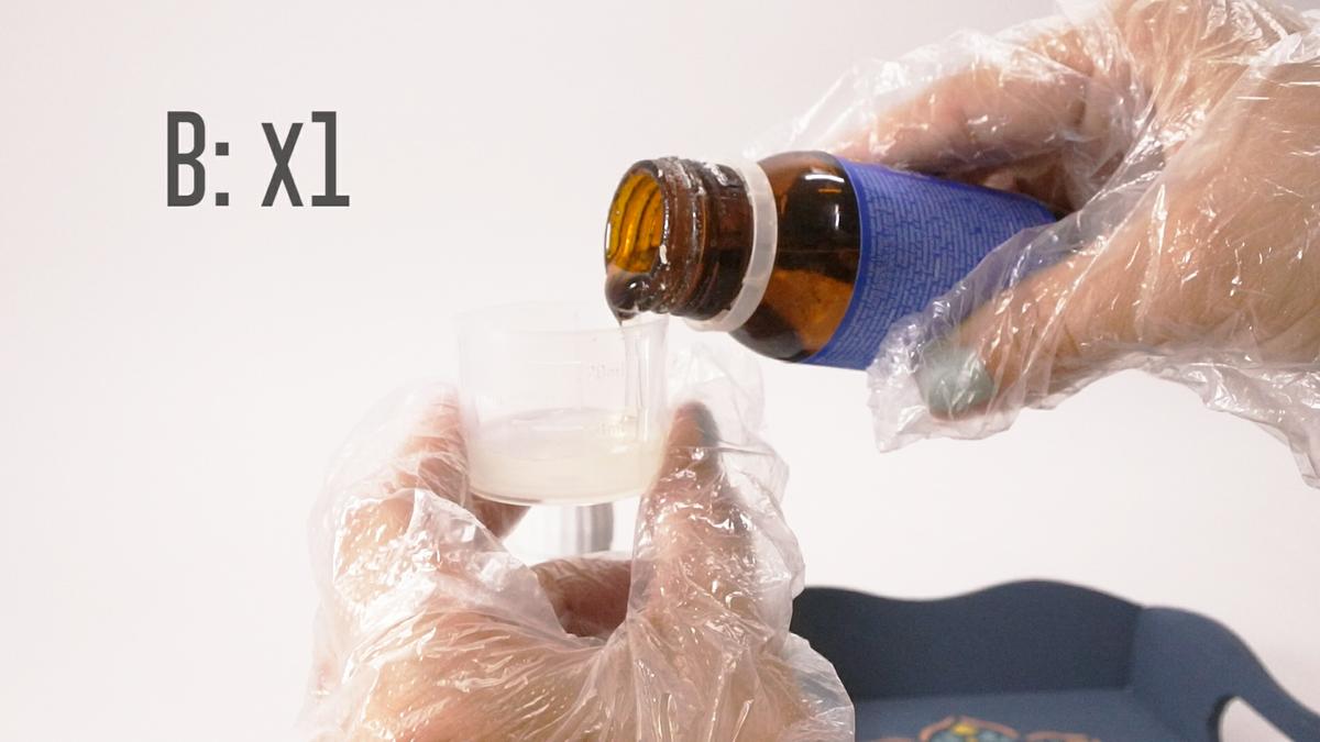 Para aplicarlo tenemos que mezclar sus dos componentes (dos partes del bote A por una del B).