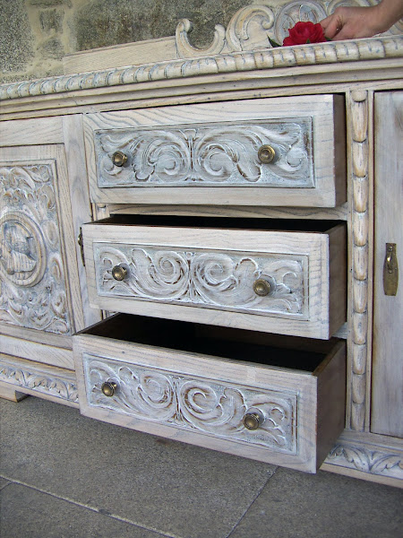 La idea era "aligerarlo" por decirlo de alguna manera, y después de decaparlo y arreglar todos los desperfecto le dí una pátina blanca