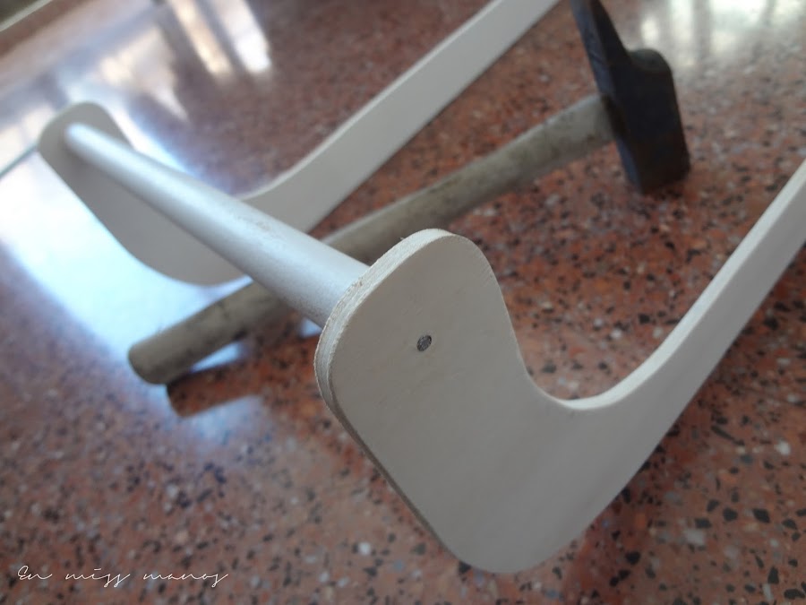 Y la uní a los laterales con cola y un clavito para agarrarlo mejor.