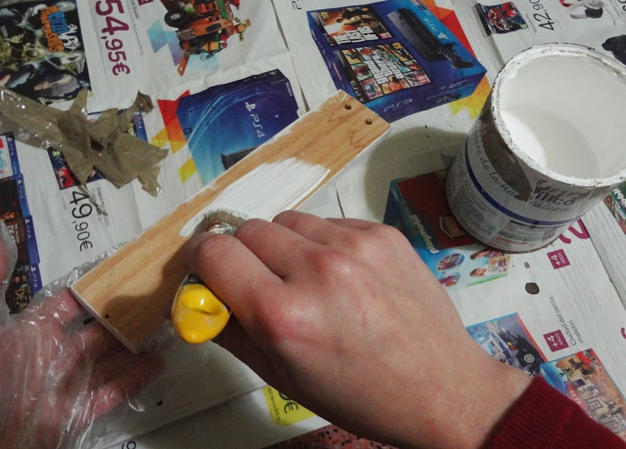 De hecho, antes de pintar le di con cera en ciertas zonas para tras la pintura ya seca, lijar y simular mejor el efecto desgastado.