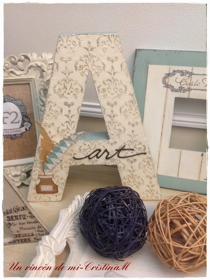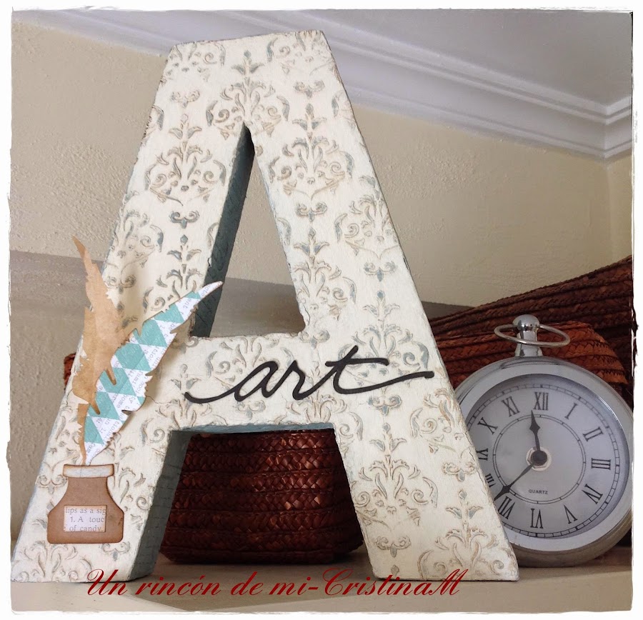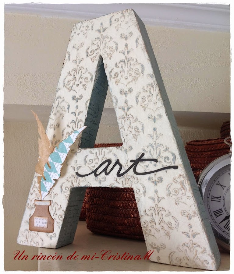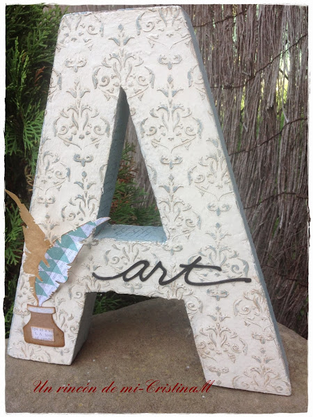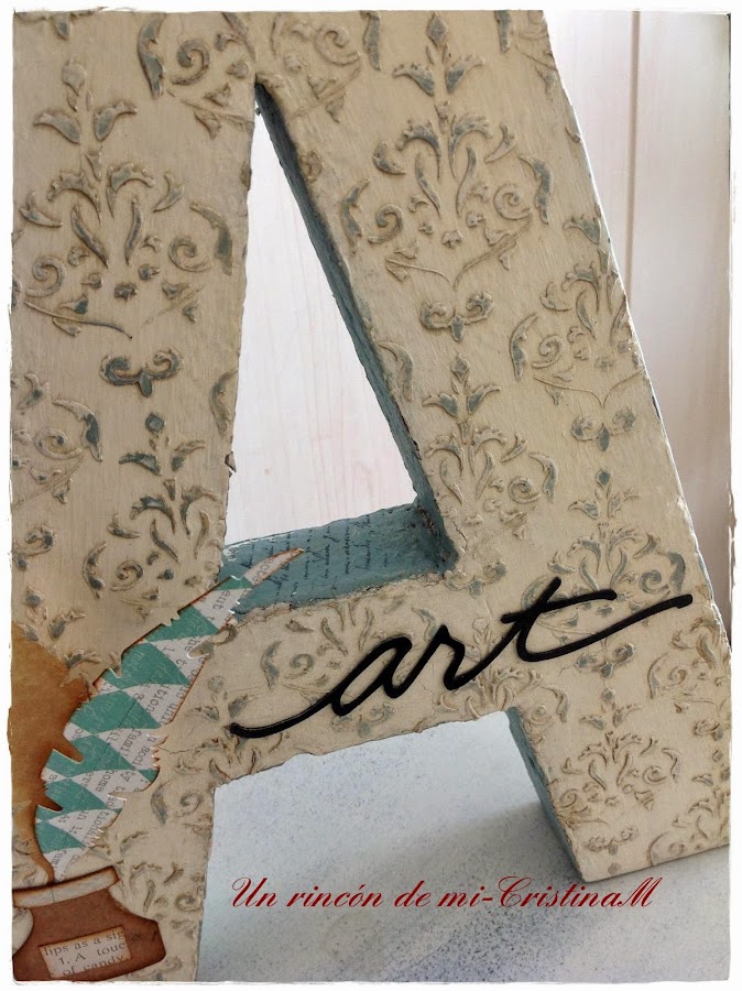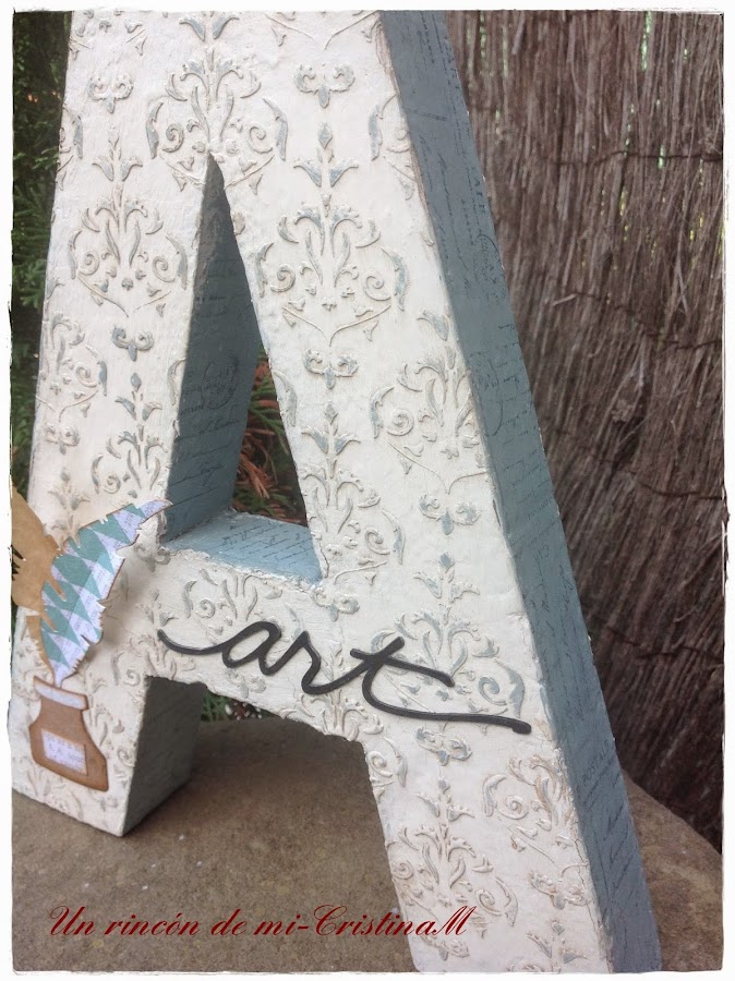 He puesto varios troqueles para dar un toque original... la palabra art cortada con mi silhouette Cameo en papel blanco y pintado con la misma pintura especial de papel que antes he usado en la letra a.