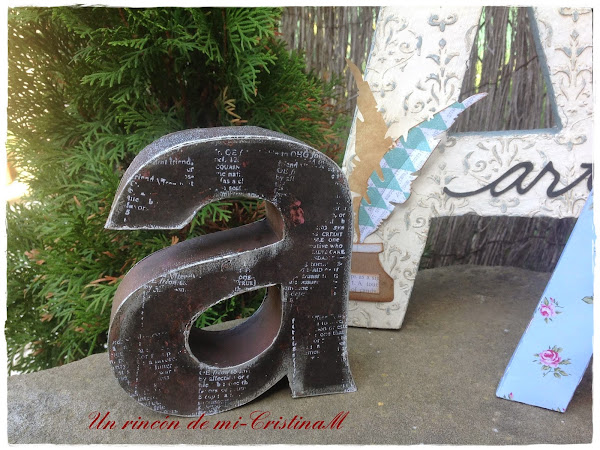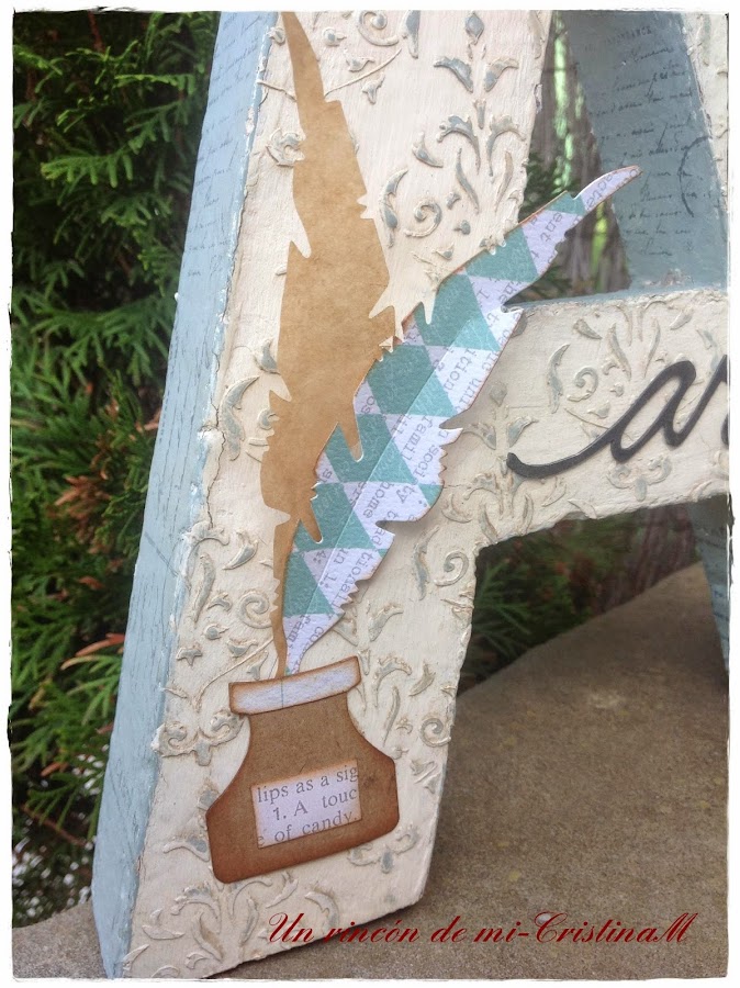 Los laterales de la letra están pintados en un tono azul vintage y luego he estampado un sello.