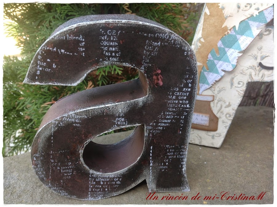 Luego he puesto un sello de letras con tinta blanca.. y esta misma tinta la he usado para sombrear todos los bordes de la letra.