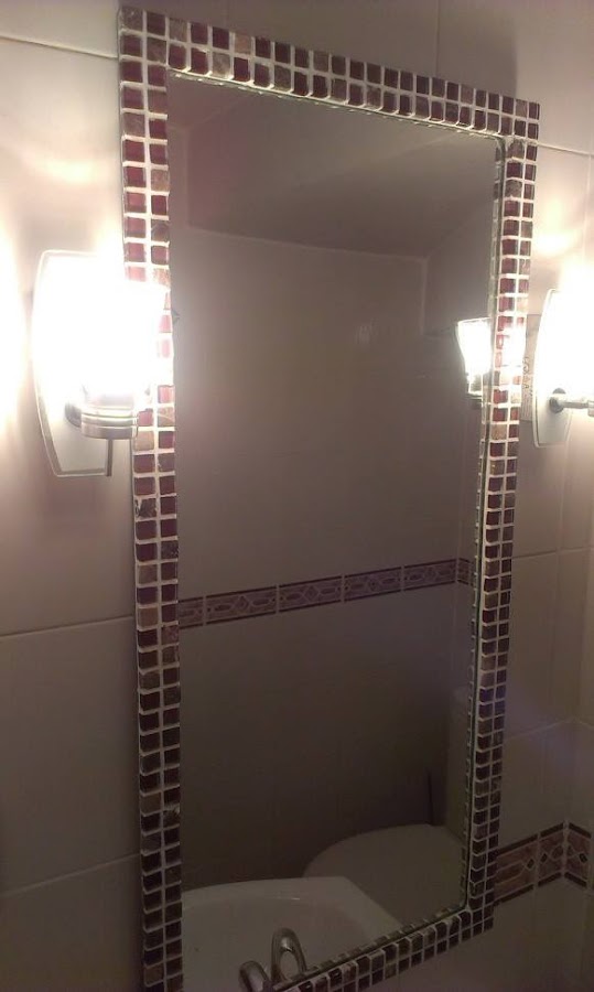En este post quiero contaros lo que he hecho estas vacaciones. Cuando compramos la casa en el aseo había un simple espejo pegado a los azulejos. Nos aconsejaron no quitarlo ya que los azulejos de debajo podrían estropearse. Así que así siguió, pero este verano cansada de verlo así tan soso decidí intentar tunearlo de alguna forma para darle algo de gracia.