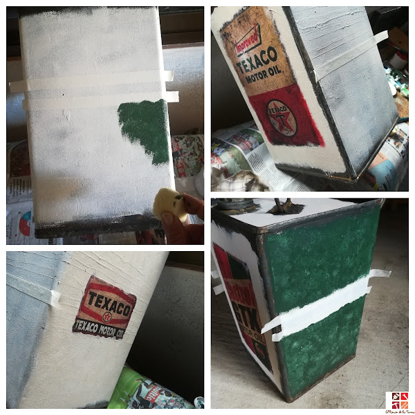 He pintado con color veis los frontales de las dos latas dejando los bordes en su estado original