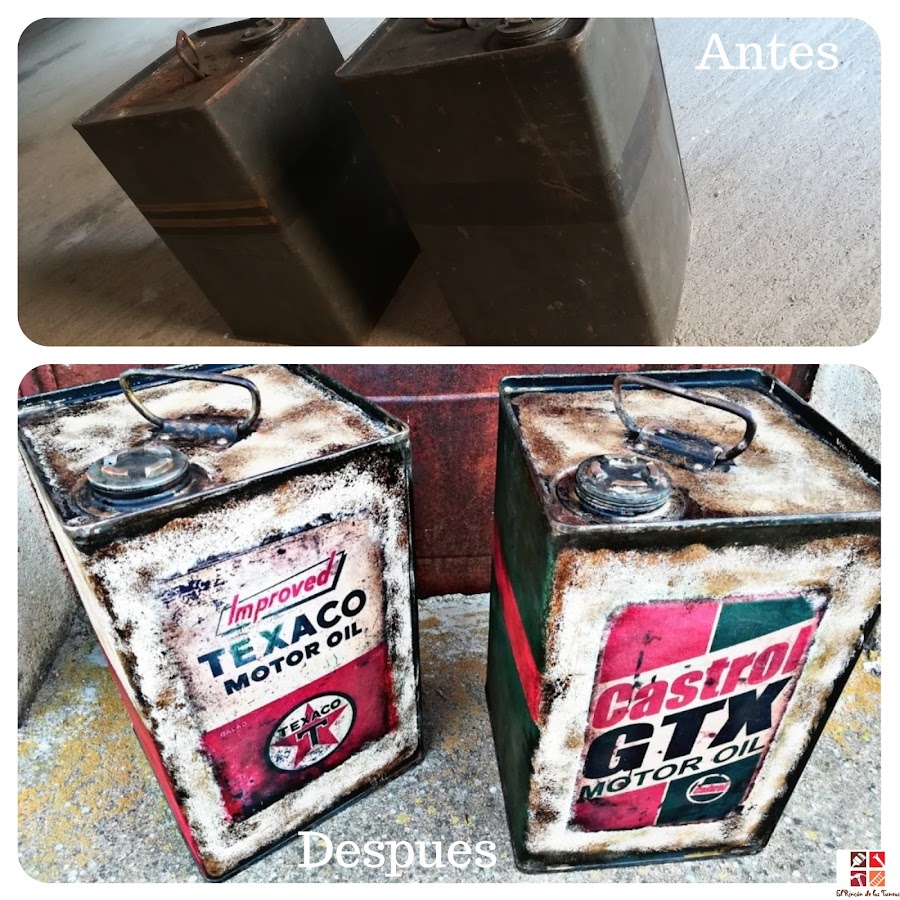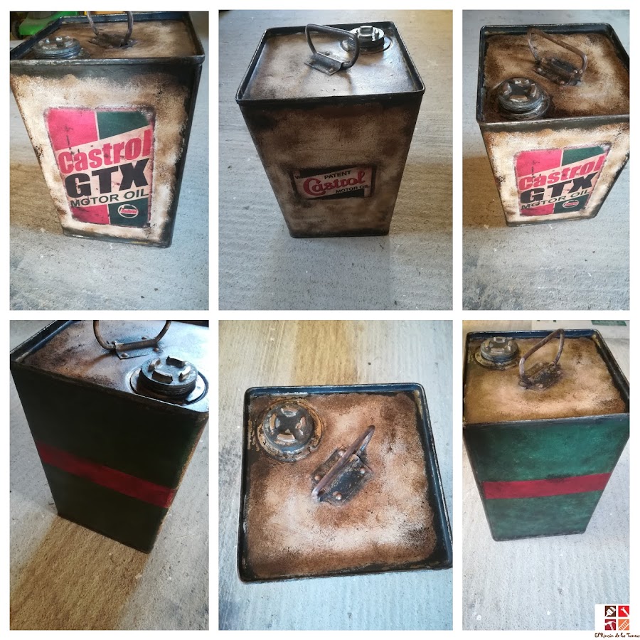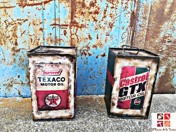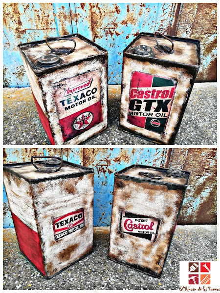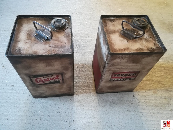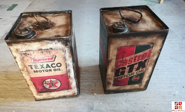 Mi aportación para este tema son dos latas de aceite que Jose me encargó hacer como si fuesen las originales de Texaco y Castrol.