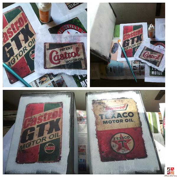 Rasgué con los dedos y fuí pegando todas las imagenes de la marca Texaco y Castrol.
