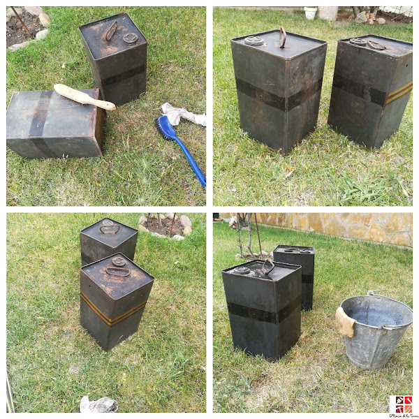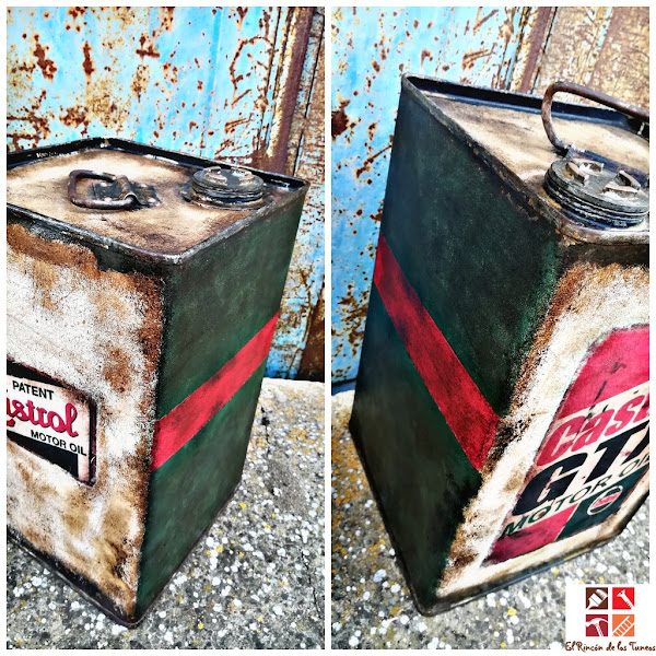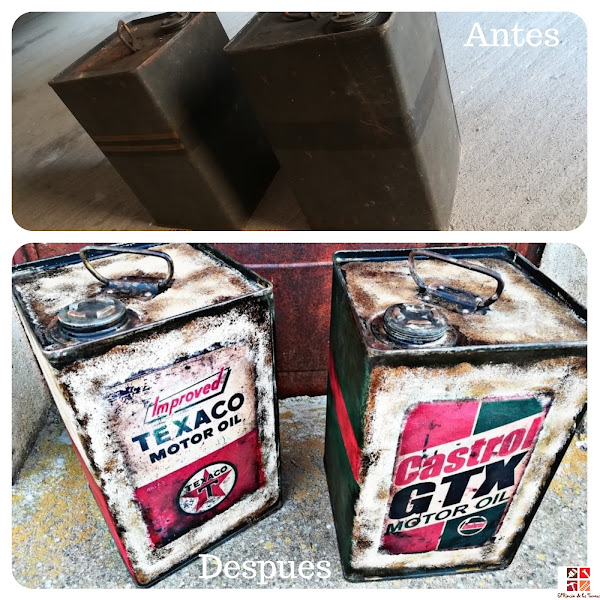 Y creo que lo conseguí, me da total libertad para hacer y deshacer como yo quiera y eso es una gozada para poder trabajar a mi gusto pero también una gran responsabilidad, yo creo que quedó encantado con ellas y yo muy satisfecha, la verdad; al principio este trabajo me pareció un tanto complicado por el estado de como estaban las latas pero en cuanto empecé con ellas me encantó dejar volar la imaginación en algo tan feo al principio que acabó siendo algo original y muy especial para su dueño.