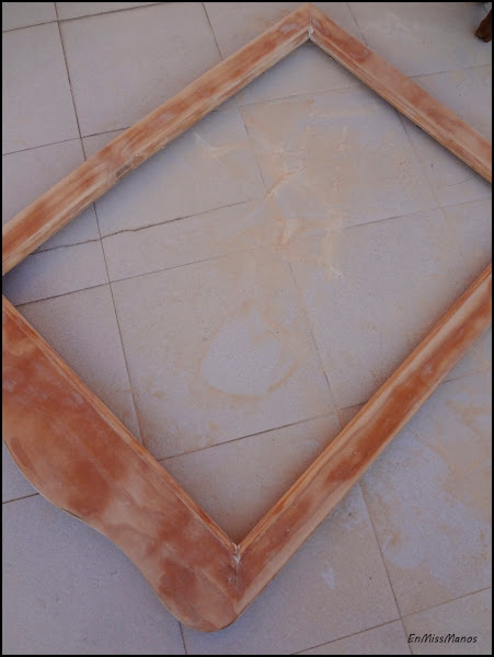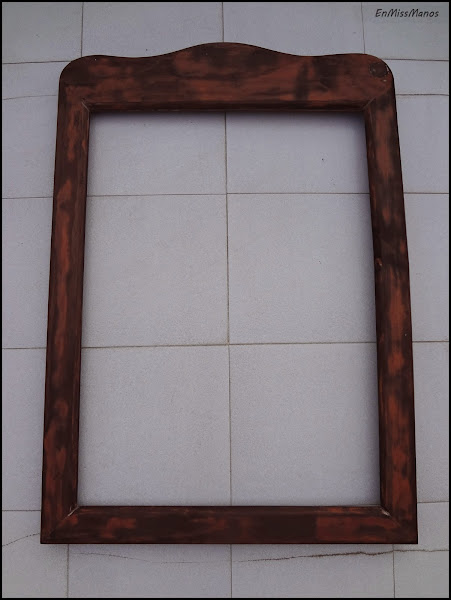 Cómo la madera era clarita, decidí darle tinte color nogal que tenía por casa,a todo el marco para oscurecerlo y que luego el desgastado se apreciara más.