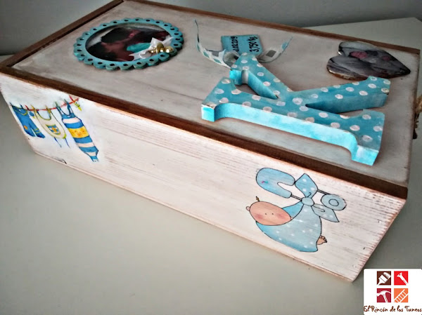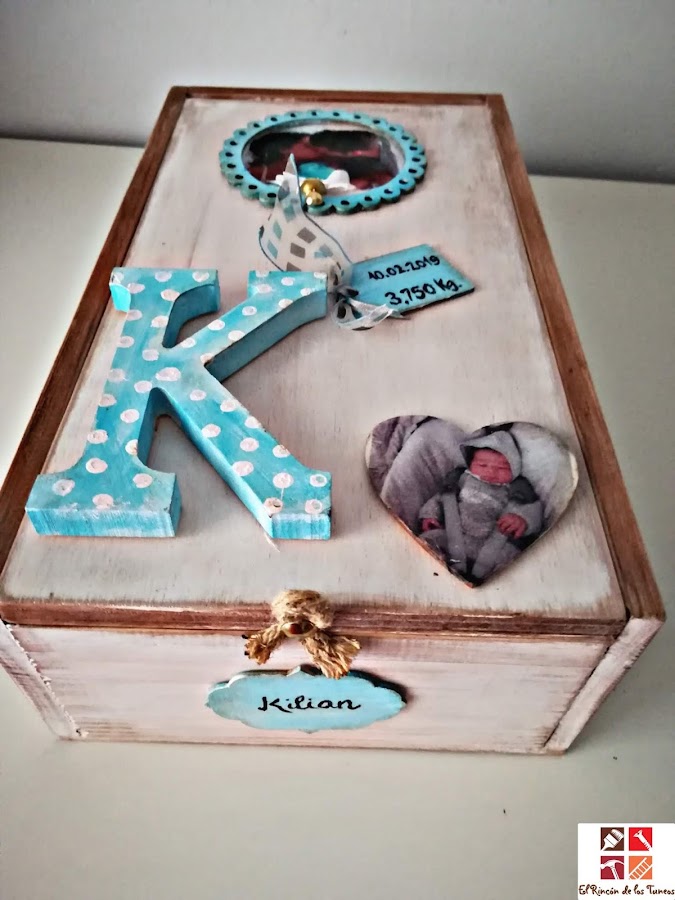 Pues hoy vengo con una caja que le he hecho para su bebé. Kilian, para que en ella guarde recuerdos, fotos, todo aquello que quiera guardar para enseñárselo cuando sea mayor.