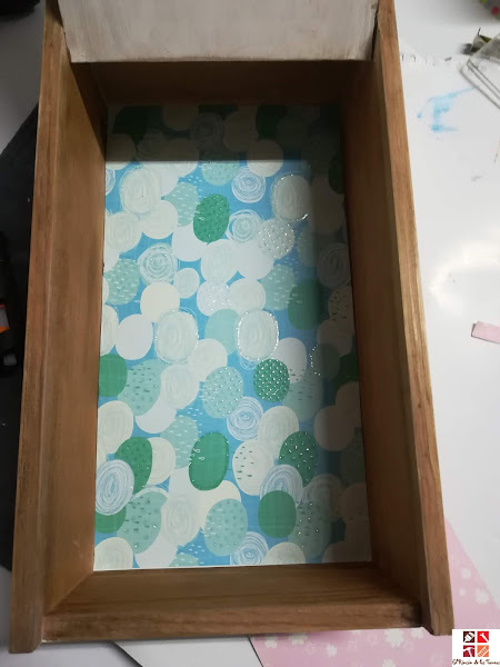 Antes de colocarlas, barnicé la caja con barniz mate y utilicé cera con color para algunas zonas.