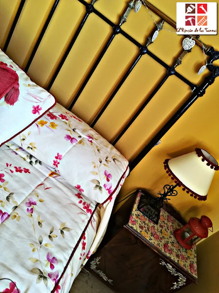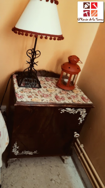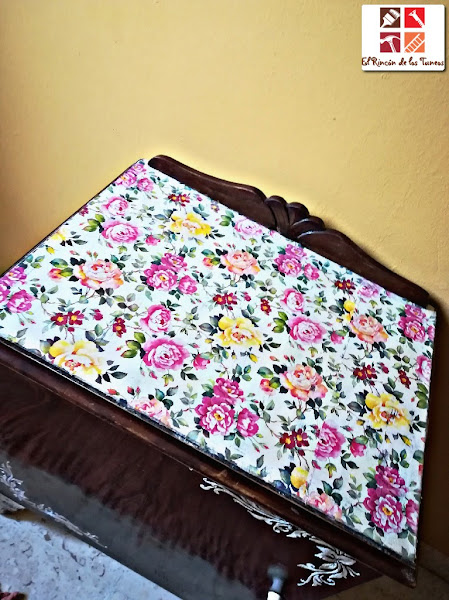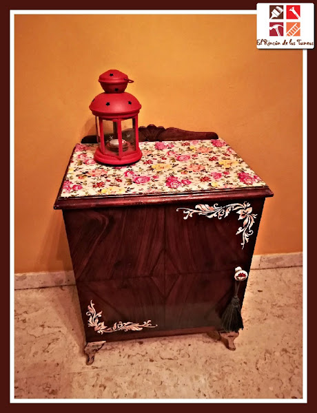 Y aunque no lo parezca todavía, ya que el tiempo está un poco loco, vengo con un tuneo de una mesilla muy primaveral y florida, a ella sí que la he vestido para la ocasión.