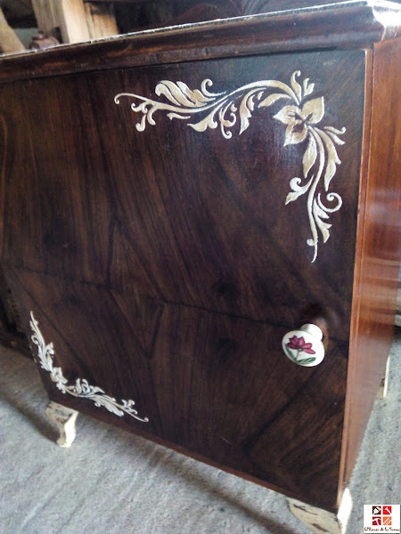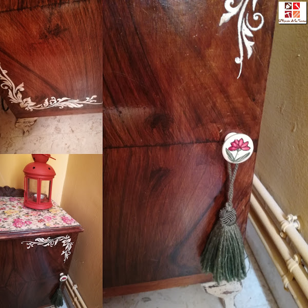 Quité el pomo y mi intención era no transformarla mucho, dejarla con su esencia, con ese tono de la madera que me gustó desde el principio , darla algún toque de pintura y decoupage pero no cambiarla mucho ya que donde la iba a poner coordina muy bien con los muebles que hay en la habitación.