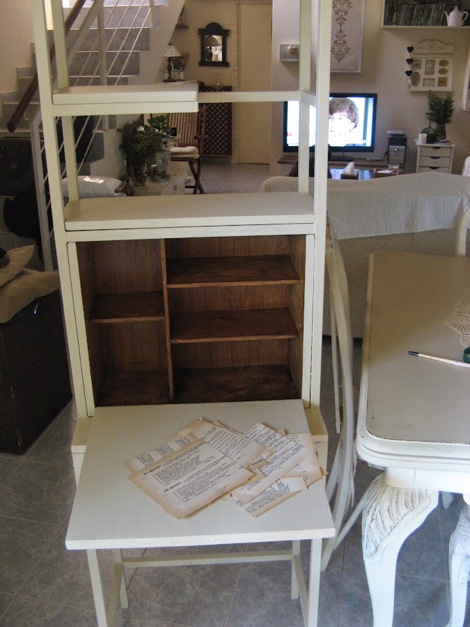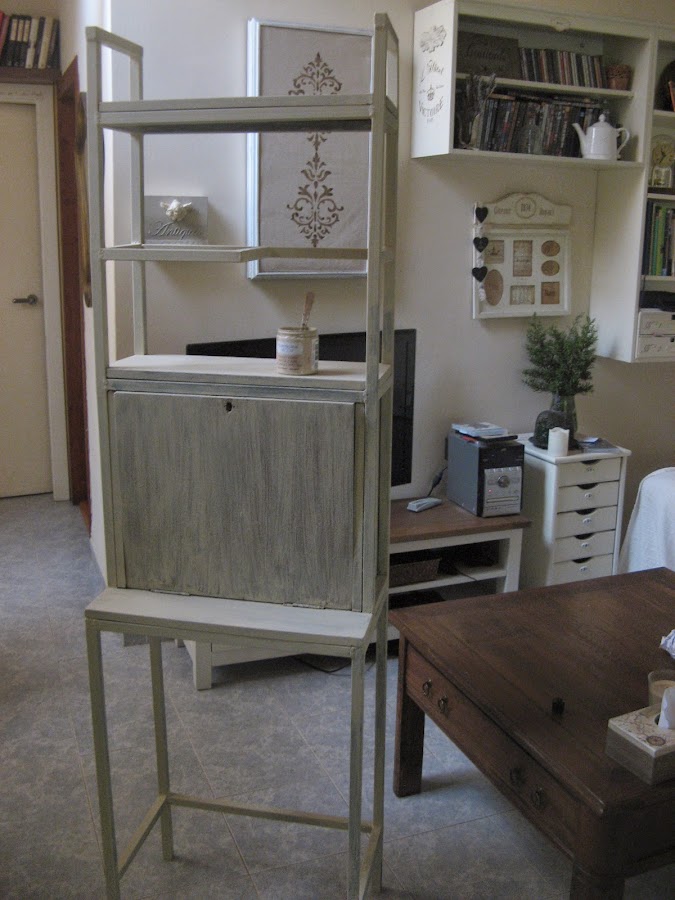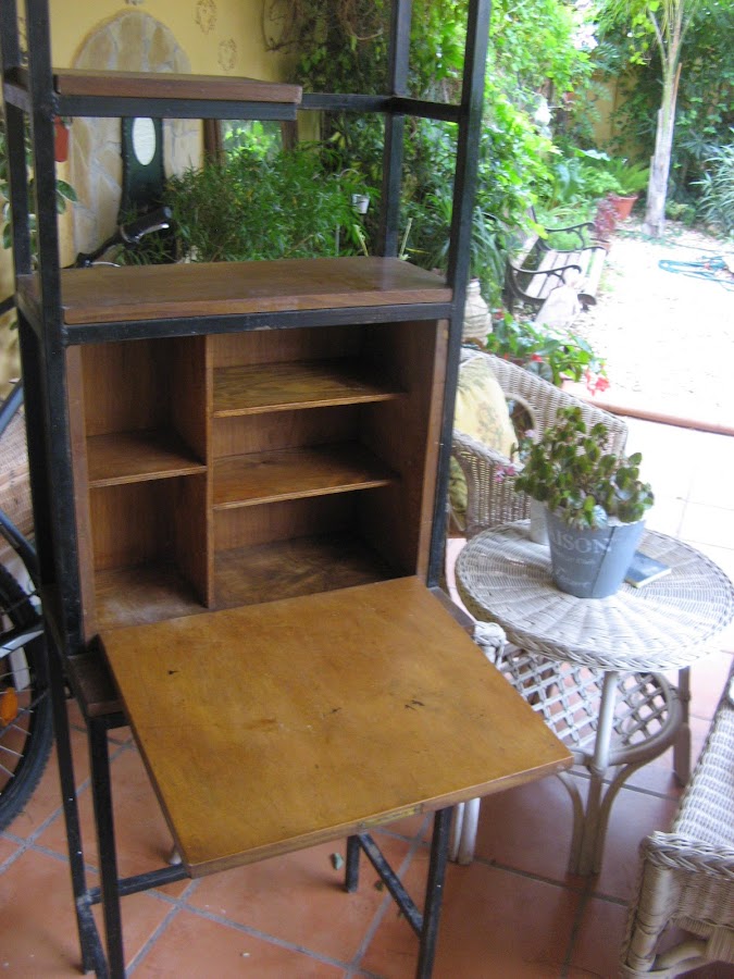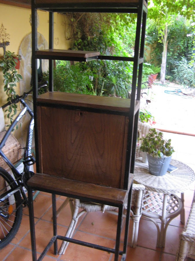 Soldando unos sencillos hierros y añadiéndole unas maderas hizo esta pequeña estanteria......la recuerdo en su dormitorio toda la vida....ahí guardaban los papeles de la casa, sacaban las cuentas diarias.....