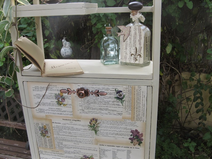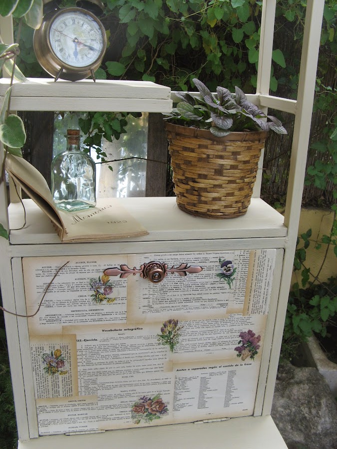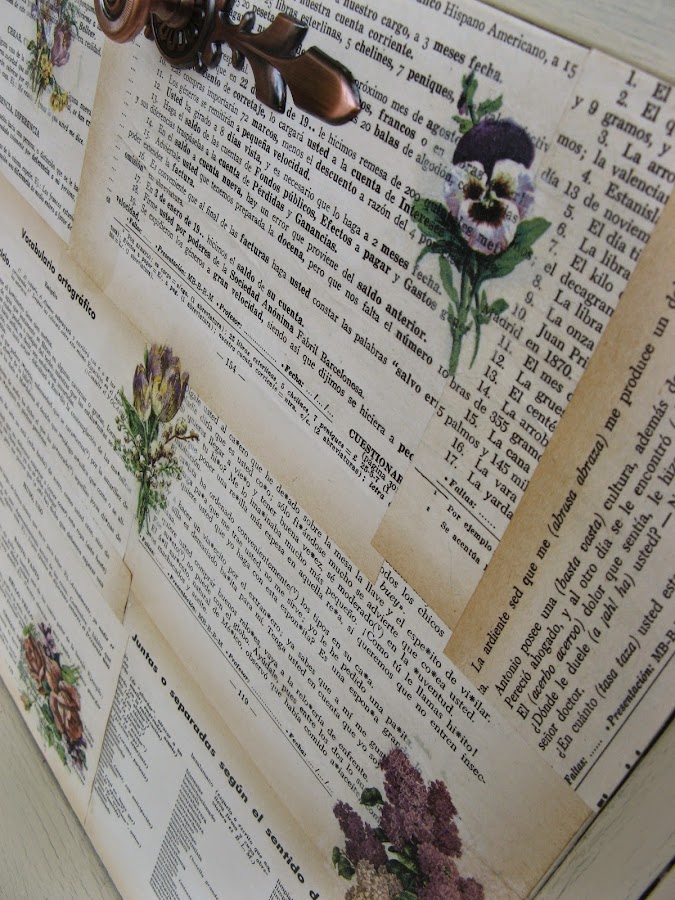 No sabía cómo decorarla hasta que me acordé de que estaba deseando probar a forrar algo con recortes de libro o periódico y hacer decoupage sobre estos. La última vez que lo hicieron las chicas de DecosurVintage me encantóooo