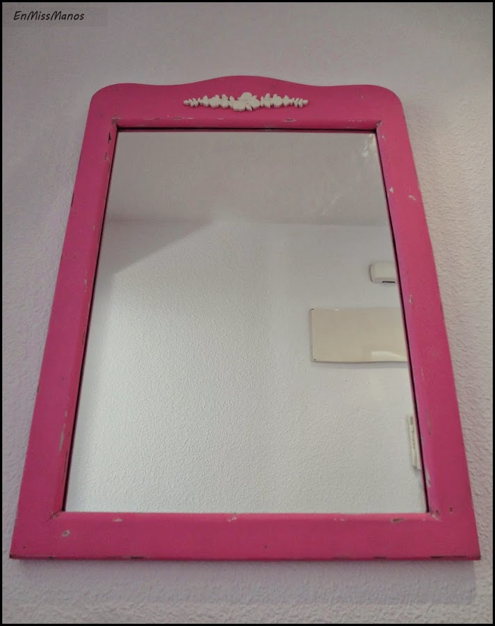 Después de pintarlo de rosa y desgastarlo por los bordes (esta vez mejor que la anterior), se me encendió la bombilla y me acordé de un relieve de rosas que tenía guardado y que cogí de una cajonera que ví en el contenedor rota.
