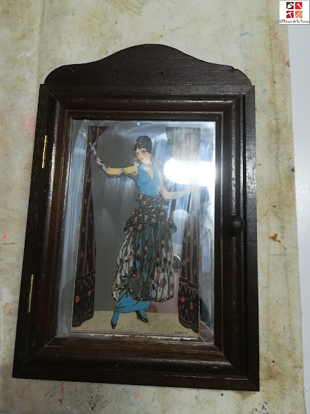 Después recorté un papel decoupage con motivos románticos y muy vintage, pegué con cola decoupage, esperé su secado y le dí dos manos de barniz mate