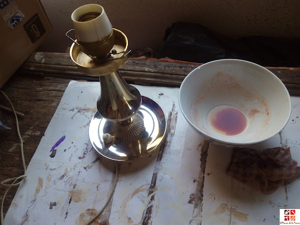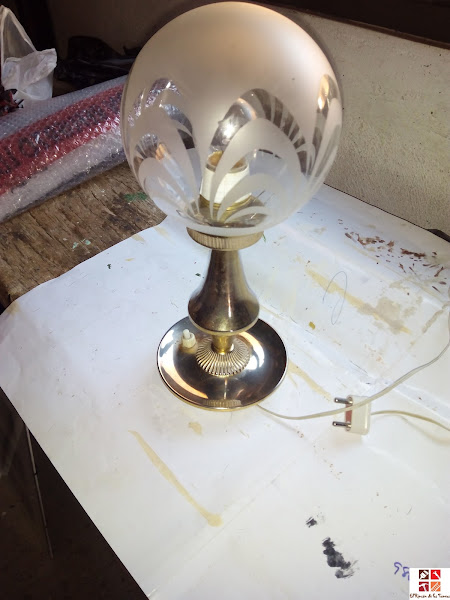 La lámpara aparte de la pantalla de bola un tanto desfasada, el dorado también estaba muy apagado, con tonos verdes y marrones que la afeaban un montón.
