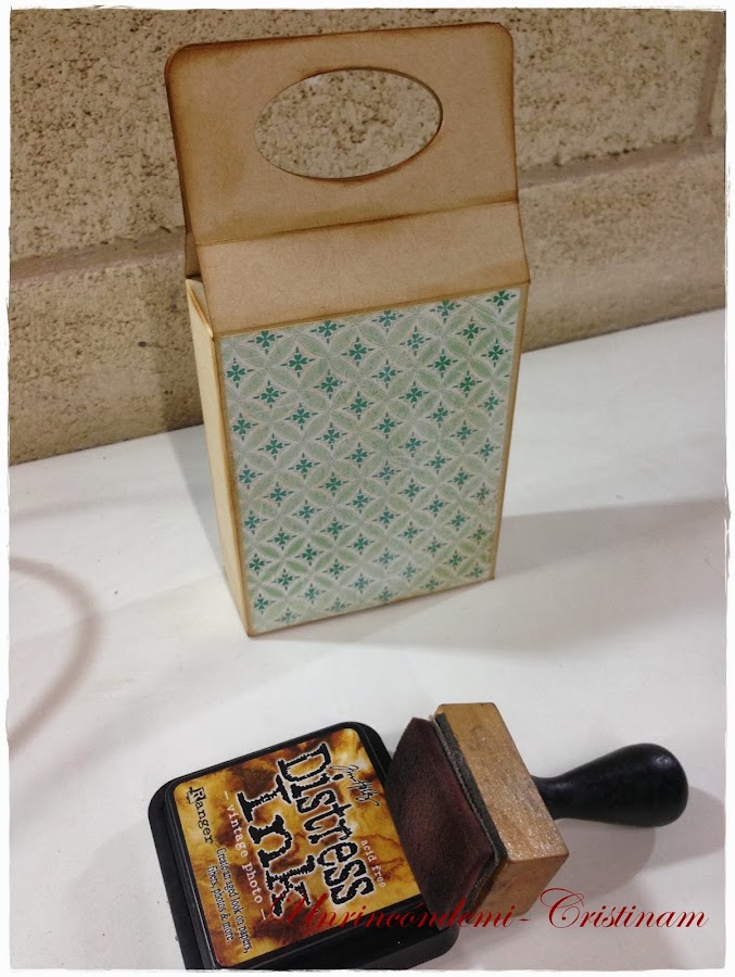 Para darle mas efecto he sombreado con tinta vintage photo toda la caja...