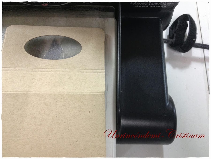 Con un troquel y la Big shot le hago las asas a la caja....aquí tengo que hacer malabarismos para que quede centrado...