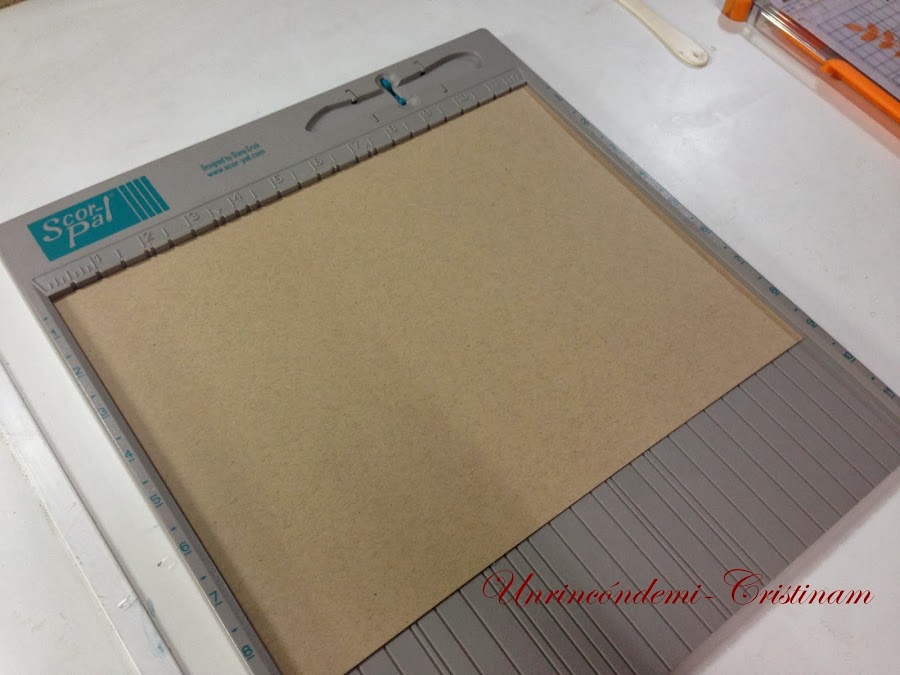 Corto con la cizalla por la línea marcada de tal forma que tengo la cartulina de medidas 12 x 9 , !!!!ojo son medidas americanas no son cm.