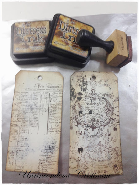 Me gusta entintar las esquinas y bordes del tag con tinta Distress vintage photo y otro tono oscuro que tengo.