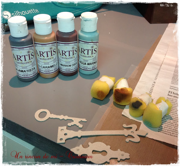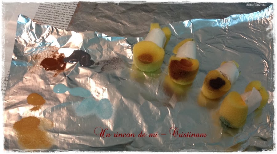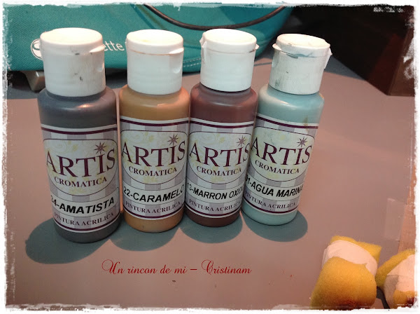 amatista , que es como un gris fuertePara extender los colores he usado esponjas que realmente pertenecen a un estropajo.