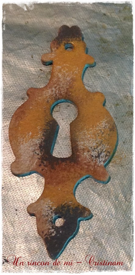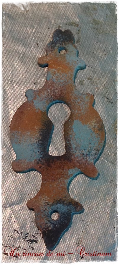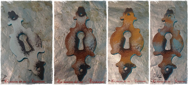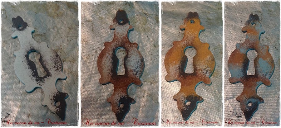 Ahora vuelvo a repetir todo el proceso , de tal modo que los colores se van integrando juntos y va tomando el aspecto de una pieza metálica oxidada.