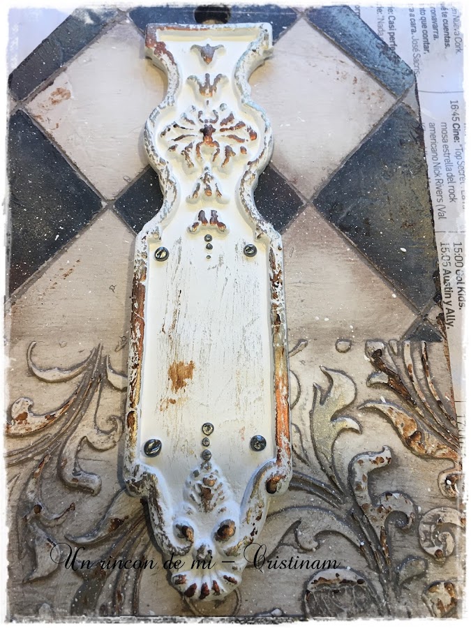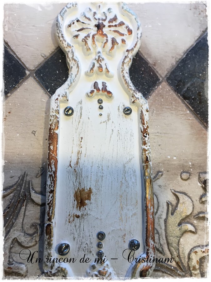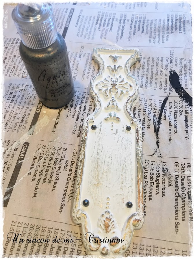 Que bonito!!destaca todo el relieve de la pieza... remato con liquid pearls imitando tornillos en algunas zonas de la pieza.